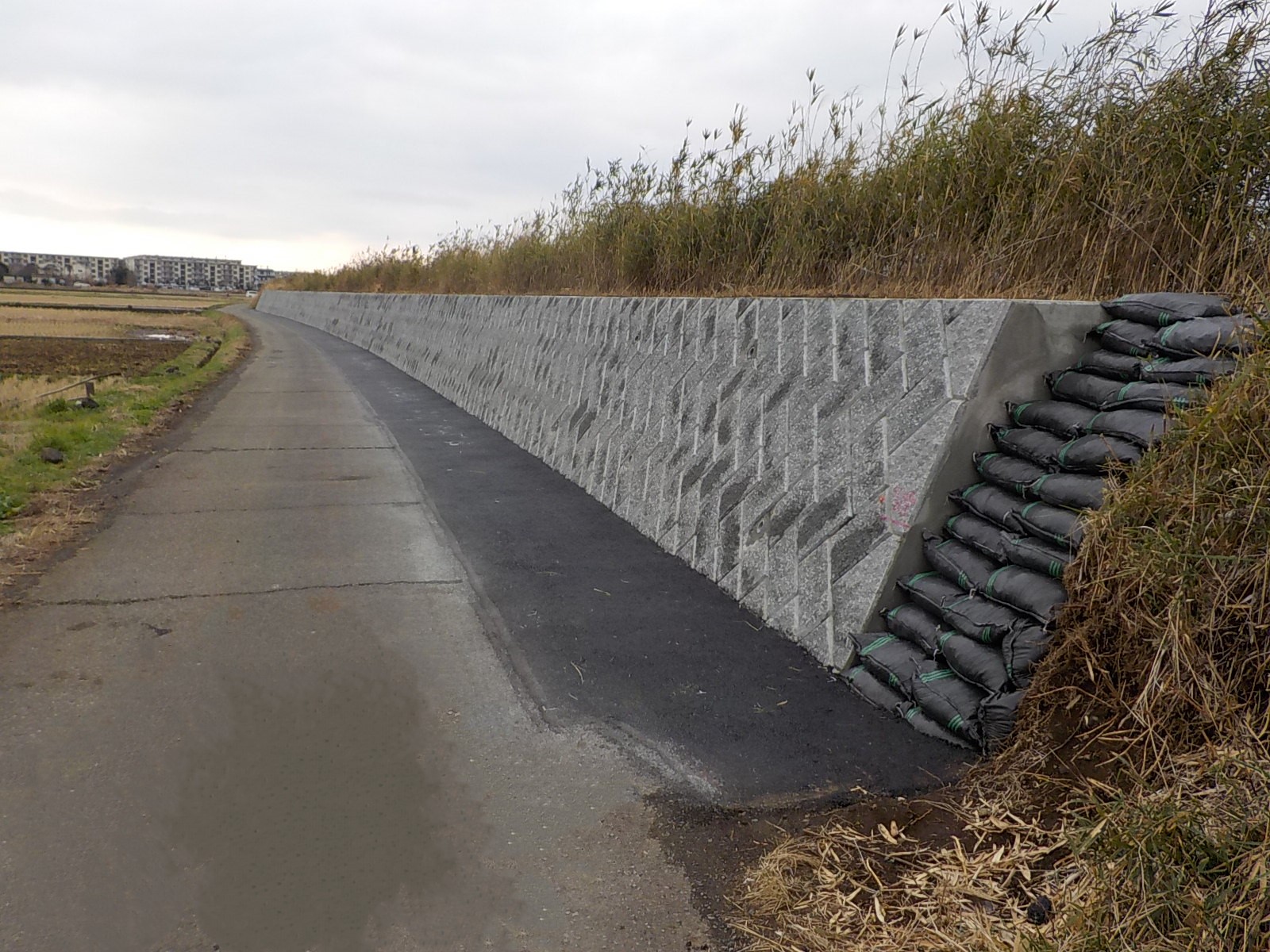 河川の拡幅や堤防の強化を行う工事です。大雨などの災害による堤防の決壊や河川の氾濫を防ぎます。