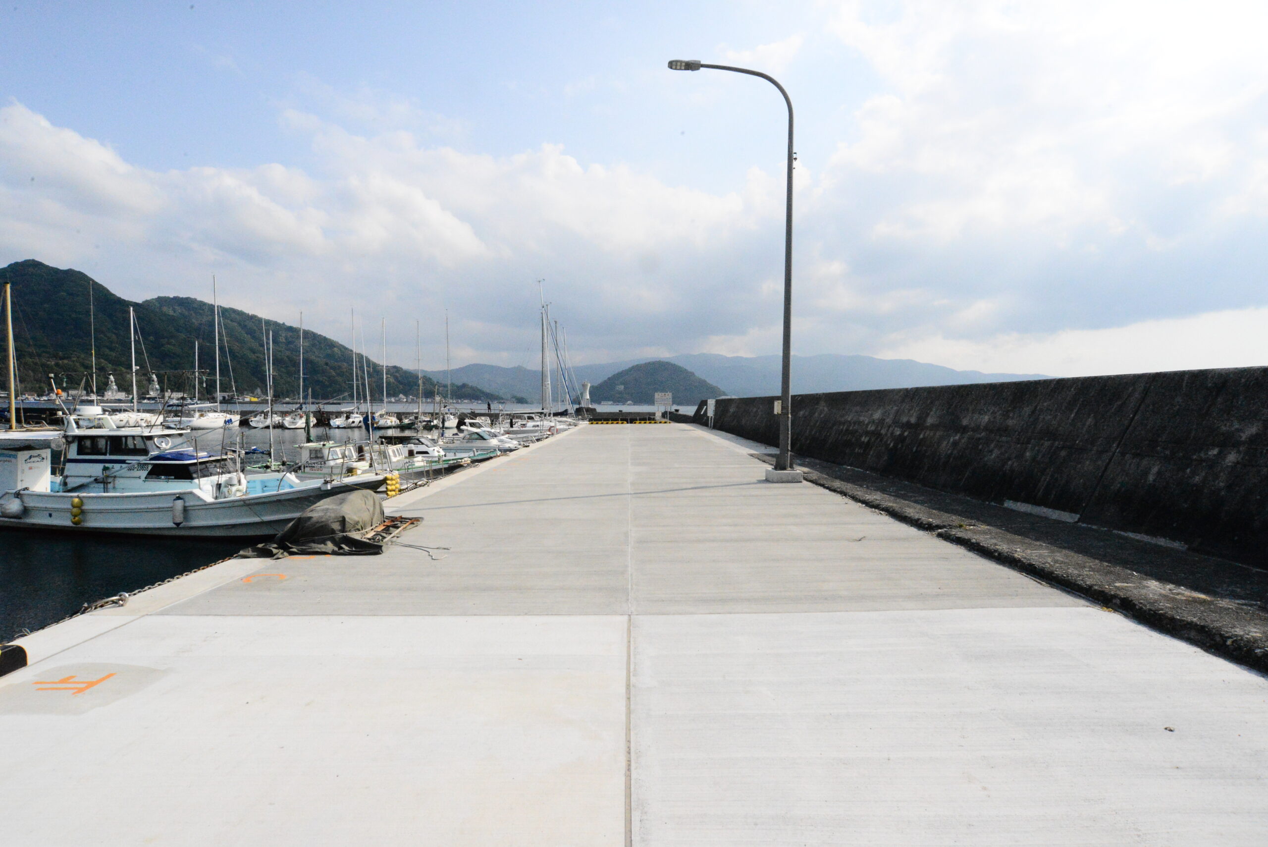 海岸沿いにある岸壁や堤防を補修・強化する工事です。海水などの影響で劣化した箇所を補修して災害に強い構造物をつくります。